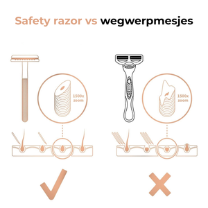 Met Pure Femmes stap je over op een luxueuze en duurzame manier van scheren. Het bevat een premium safety razor inclusief houder, Pre Shave Scrub, Shave Butter, After Shave Serum en 10 scherpe mesjes, zodat je direct kunt starten. In tegenstelling tot wegwerpmesjes scheer je met een safety razor veel gladder, zonder last van irritatie of rode bultjes en de razor zelf gaat levenslang mee. Een investering in comfort, kwaliteit en duurzaamheid.